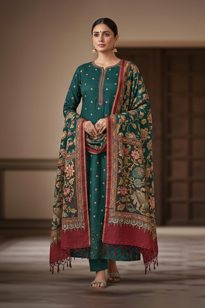 Discover premium pashmina suits and shawls crafted for effortless sophistication